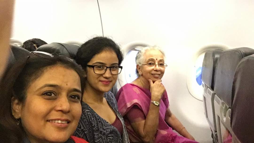Nirupama also posts pictures from Delhi airport as they are about to take off for their Kaziranga adventure.